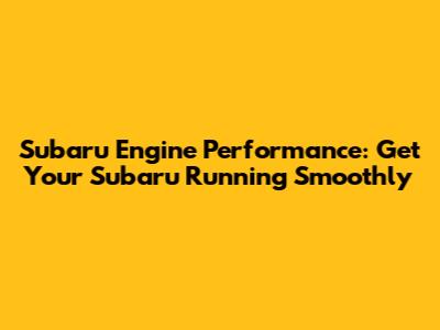 Subaru Engine Performance: Get Your Subaru Running Smoothly