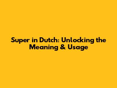 Super In Dutch: Unlocking The Meaning & Usage