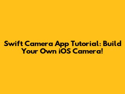 Swift Camera App Tutorial: Build Your Own IOS Camera!