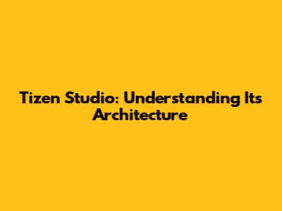 Tizen Studio: Understanding Its Architecture