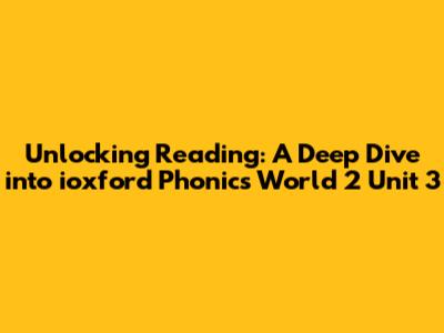 Unlocking Reading: A Deep Dive Into Ioxford Phonics World 2 Unit 3
