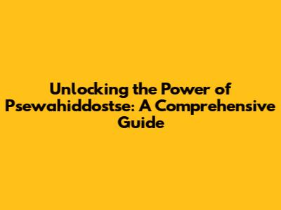 Unlocking The Power Of Psewahiddostse: A Comprehensive Guide