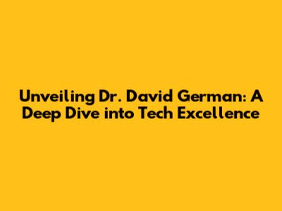 Unveiling Dr. David German: A Deep Dive Into Tech Excellence