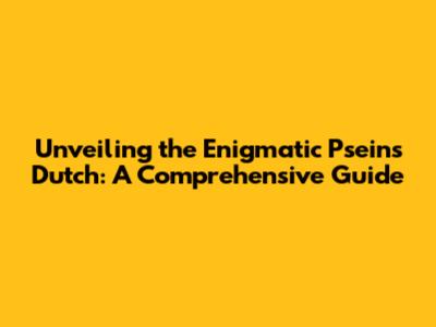 Unveiling The Enigmatic Pseins' Dutch: A Comprehensive Guide