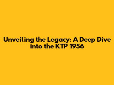 Unveiling The Legacy: A Deep Dive Into The KTP 1956