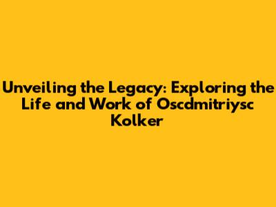 Unveiling The Legacy: Exploring The Life And Work Of Oscdmitriysc Kolker