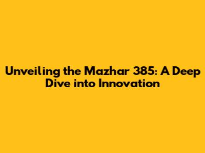 Unveiling The Mazhar 385: A Deep Dive Into Innovation