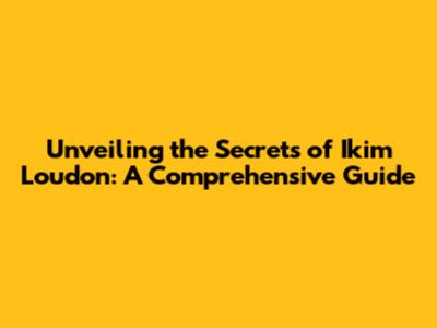 Unveiling The Secrets Of Ikim Loudon: A Comprehensive Guide