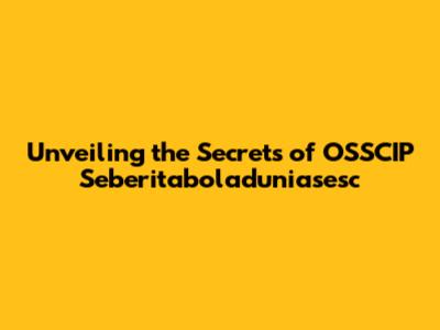 Unveiling The Secrets Of OSSCIP Seberitaboladuniasesc