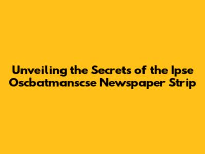 Unveiling The Secrets Of The Ipse Oscbatmanscse Newspaper Strip