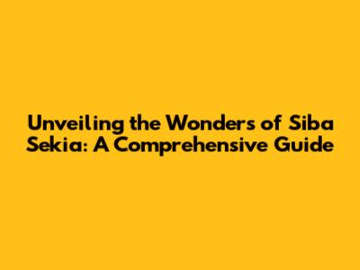 Unveiling The Wonders Of Siba Sekia: A Comprehensive Guide