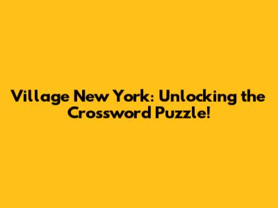 Village New York: Unlocking The Crossword Puzzle!