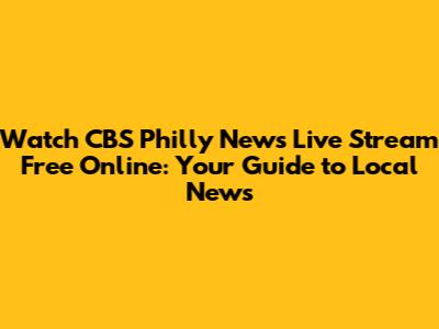 Hey there, news buffs and Philly fanatics! Are you constantly on the hunt for the latest updates from the City of Brotherly Love? Do you want to stay in the loop with what's happening around town, from local politics and community events to those nail-biting sports moments? Well, you're in luck! This guide is your ultimate resource for discovering how to watch CBS Philly News live stream free online. We're diving deep into all the ways you can access your favorite local news, ensuring you never miss a beat. Get ready to explore the options, understand the accessibility, and learn how to make the most of your streaming experience. Let's get started, shall we?