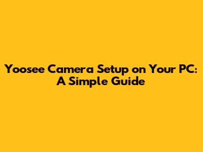 Yoosee Camera Setup On Your PC: A Simple Guide
